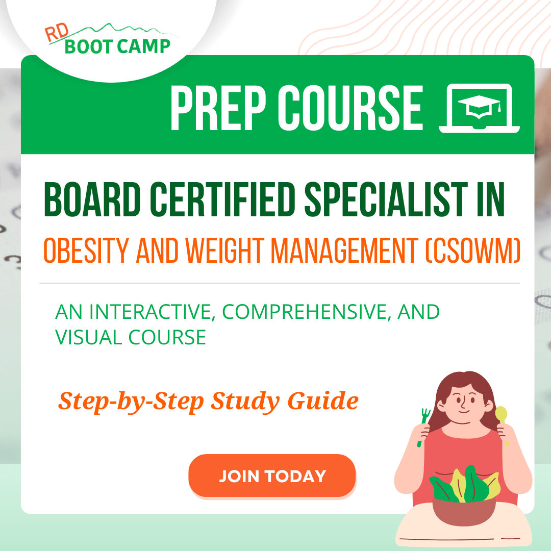 In this course, we take you step-by-step through study information that you need to know for the Board Certified Specialist in Obesity and Weight Management (CSOWM) exam. This is an interactive, comprehensive, and visual course that will help you learn and understand the information. There are situational practice questions throughout to help ensure you feel confident in answering questions on the exam!