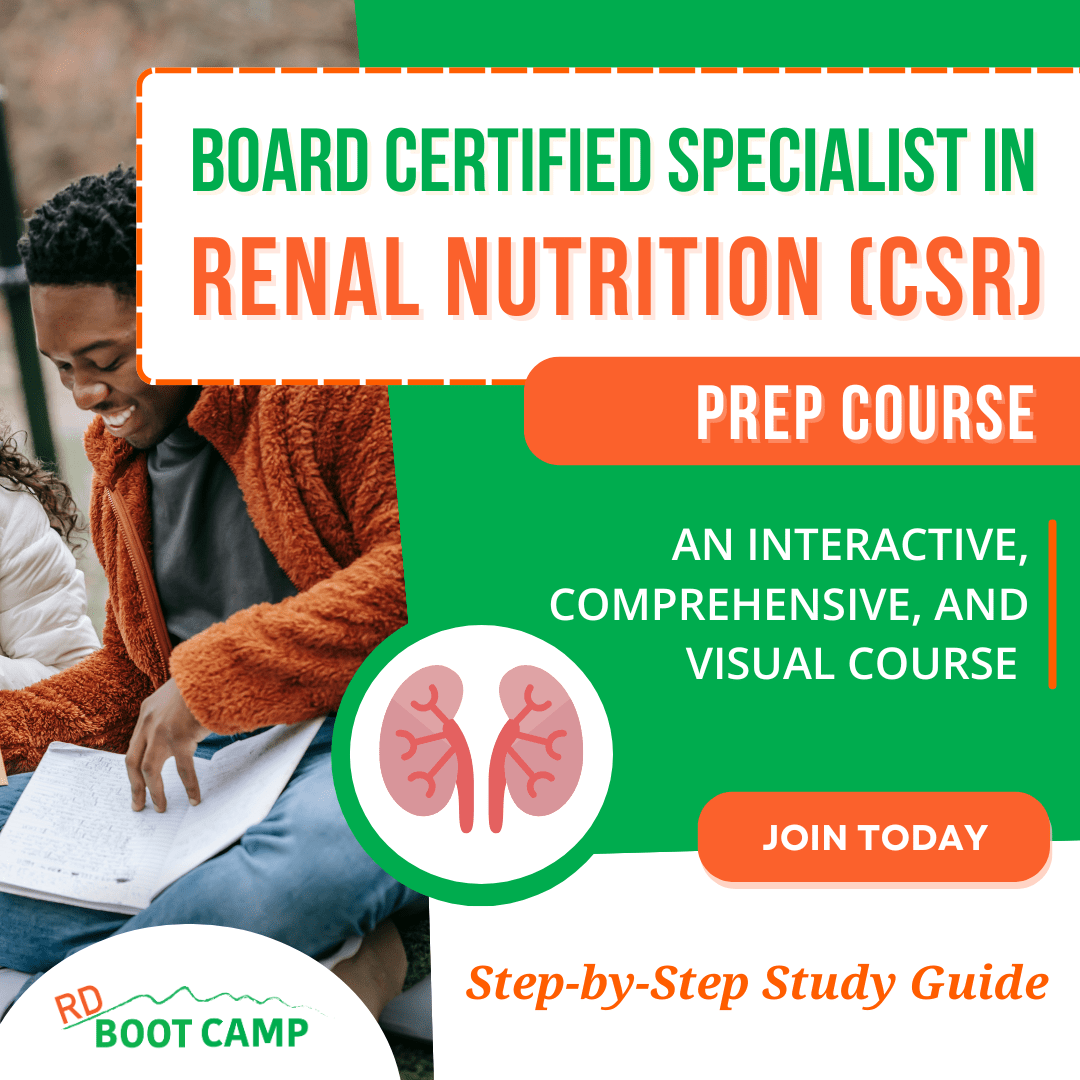 In this course, we take you step-by-step through study information that you need to know for the Board Certified Specialist in Renal Nutrition (CSR) exam. This is an interactive, comprehensive, and visual course that will help you learn and understand the information. There are situational practice questions throughout to help ensure you feel confident in answering questions on the exam!